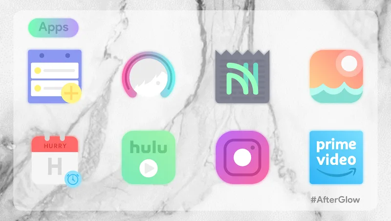Afterglow Icons Pro liteapks ncorporates subtle glow effects behind each vector asset. Combined with the soft pastel color palette, this extra pop of vibrancy around icons introduces added flair. But despite effects, icons remain highly legible while complementing both light and dark wallpapers. It’s a balanced approach fusing creativity, consistency and usability.QUALITY CUSTOMIZATION OPTIONSWith over 3,000 base icons boasting 192×192 pixel vectors, Afterglow Icons Pro offers an ample icon library suited even for higher resolution modern devices. Combine that with alternative icons, glow effects and integrated folder icons for extensive personalization capabilities. Then through weekly expansions and special request responses, Afterglow continues providing quality icons for custom launchers.