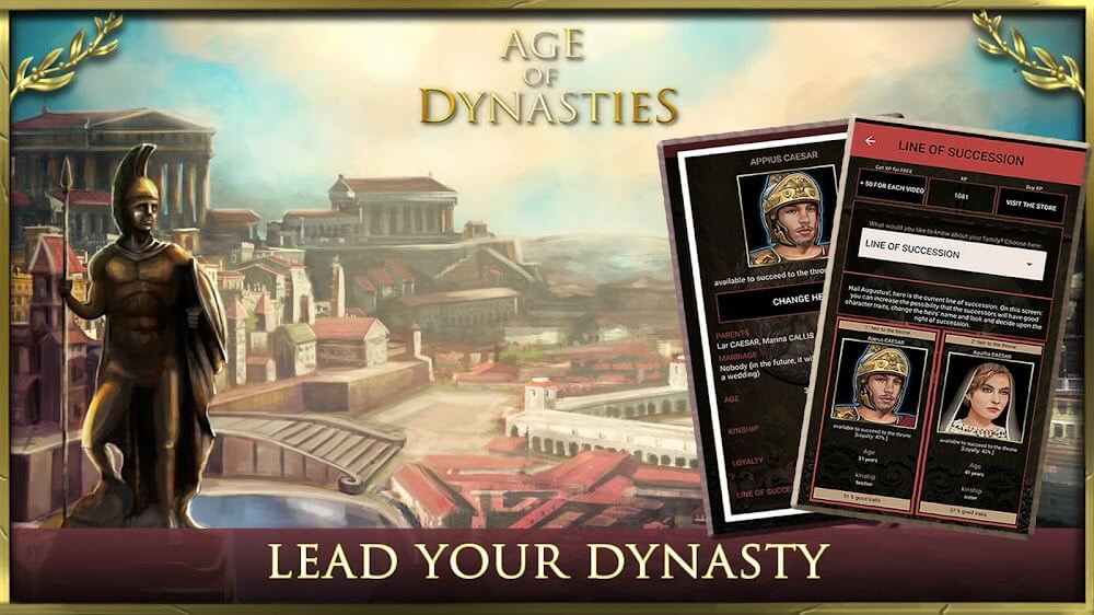 Age Of Dynasties Roman Empire Premium hat need wise planning and strategies. Several sovereigns, either positive or negative, for your dynasty. You can select the heirs of your dynasty from the available list of emperors. Complete the quarters by following the duties assigned to you in each season and event. Forge Alliances in your dynasty with good people and join your brothers and sisters with strategy games during the glorious Roman Empire. Follow the instructions clearly to win the combat and to expand the kingdom.Show your talent as the emperor and disco