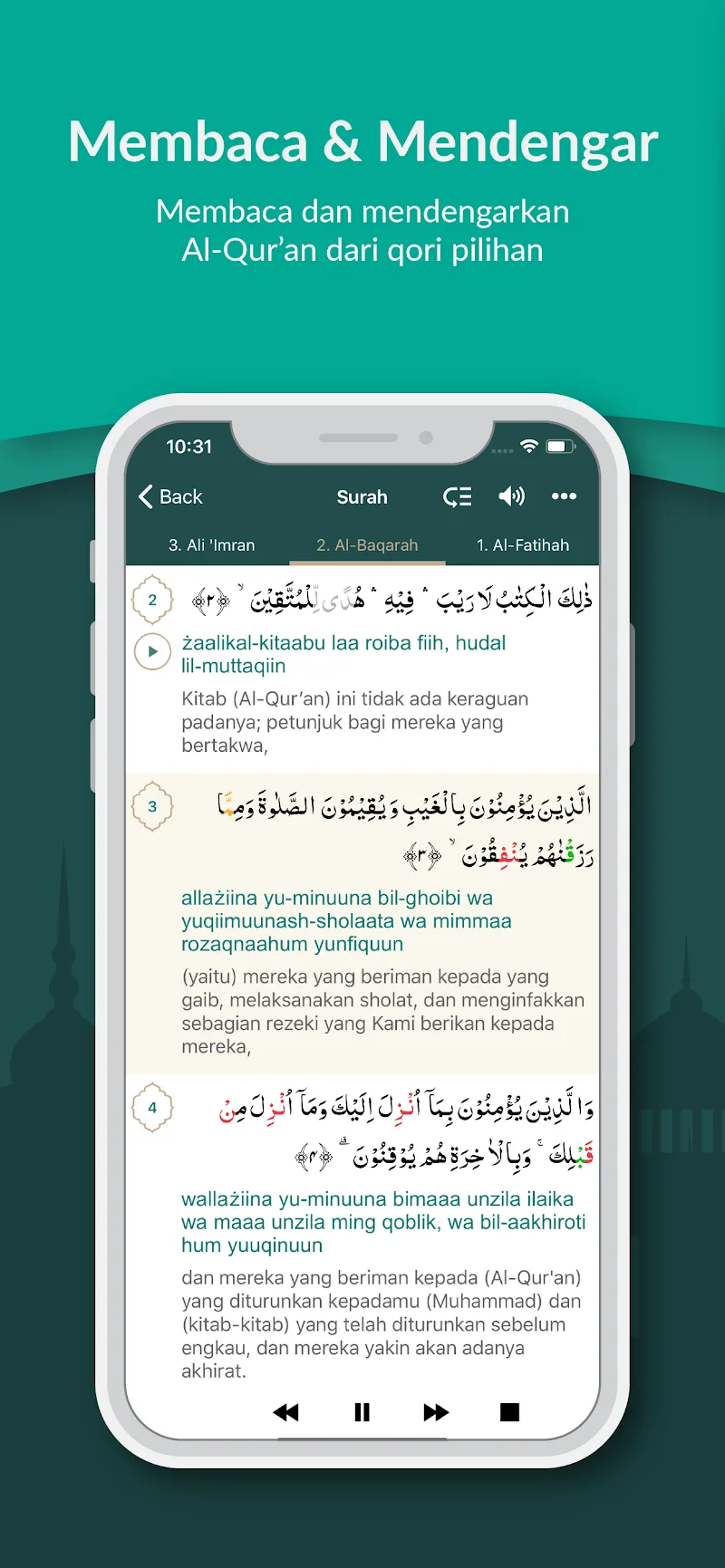 Al Quran Indonesia Mod Apk y about losing the reading experience when exposed to technology. You will be given many tools to make yourself more interested in the Quran.Unlimited accessibility: Simply put, the app does not require you to meet too many conditions to be able to use the app. A typical example is that users are allowed to use the app anywhere even if they do not have an internet connection.Listening experience: With the choice of 8 different reciters, this feature helps users impro