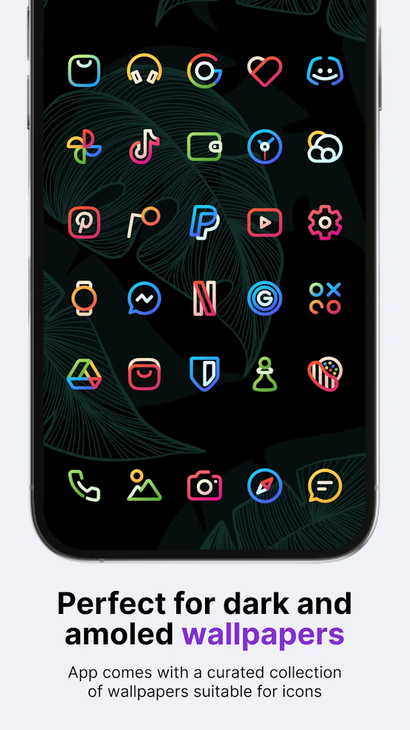 Aline Bold Linear Icon Pack Premium t for your smartphone. In particular, everyone is free to adjust the experience to suit the interface.ALL-IN-ONE PERSONALIZATIONThe number of included resources can often be more limited than the number of current icons in the library. However, you should not underestimate them because of their strong support and diverse designs.Stunning Wallpaper Selection: The system owns more than 20 custom wallpapers to use compatible icons that the application supports. Th