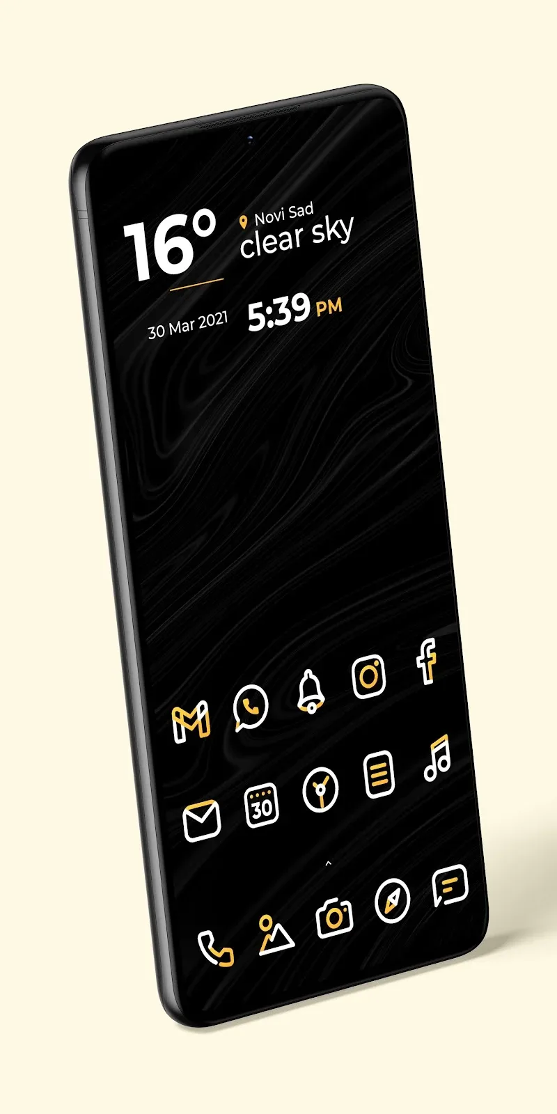 Aline Yellow Linear Icon Pack Premium ternative icons for popular apps, ensuring a consistent visual style across your entire home screen.Weekly updates added: Users with weekly updates, new apps are constantly added to the pack.PREMIUM CUSTOMIZATION TOOLSIn addition to the library with huge alternative app icons, this app can also provide its users with the ability to customize their home screen in the most comprehensive way. The app will provide you with a package of 20 custom wallpapers and 5 KWGT widgets so that you can synchronize all the images in the main interface of the device with the same theme. Users c