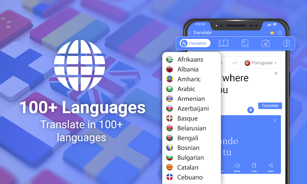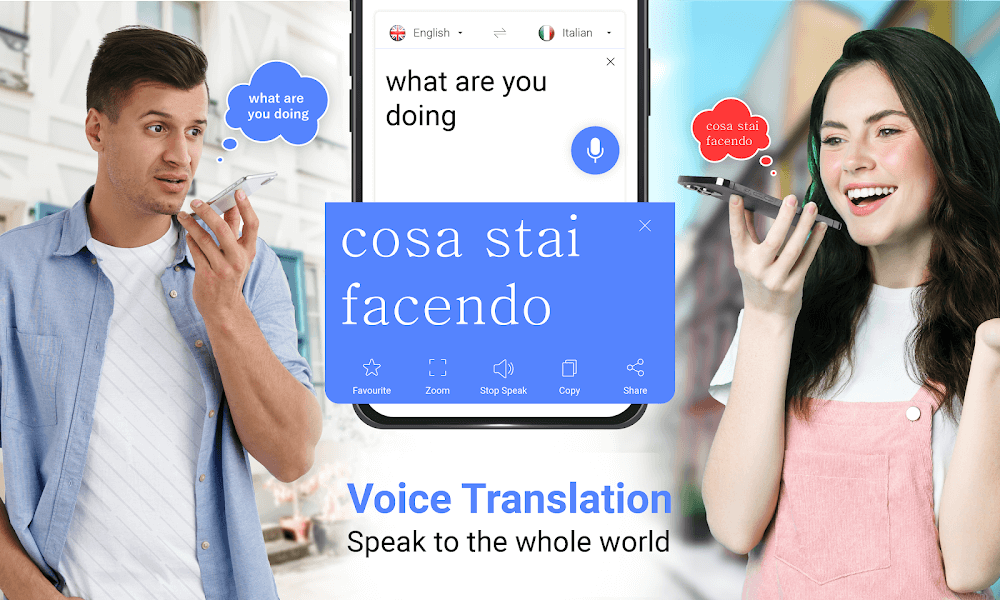 All Language Translate App 2 Mod Apk th peace of mind when using this app because it can cover almost all languages in the world.Breaks barriers: The biggest benefit that this application brings is that it can break down the language barriers that we will encounter when talking to people from other countries.REAL-TIME VOICE AND TEXT TRANSLATIONThe feature that many users appreciate is that this app allows users to input the Open text they want to translate with their voice. This is really helpful for us when we travel to other countries, but don’t waste time entering an entire conversation here. In addition, it can also automatically read out the translated version, saving the opponent from having to look at it and read it themselves. Besides, it also helps users avoid the risk of someone stealing their phone.Instant translation: By adding this feature in the application, users can convert all the content they are saying into text and thereby create a new translation instantly.Real-time conversat