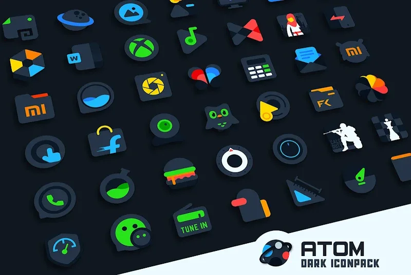 The dark background with colorful icon patterns will bring a very different experience to users. Atom IconPack has created such a special icon pack to share with users. This icon pack is created from unique ideas combining warm colors with dark colors.IMMENSE ICON LIBRARYThe application owns a huge icon library that can meet the needs of many users. This library provides more new icon patterns after each update. Users can admire the diversity of the icon pack when activating it. All icon patterns are available and ready to apply immediately upon user request.Over 2800 Icons: The icon pack contains thousa
