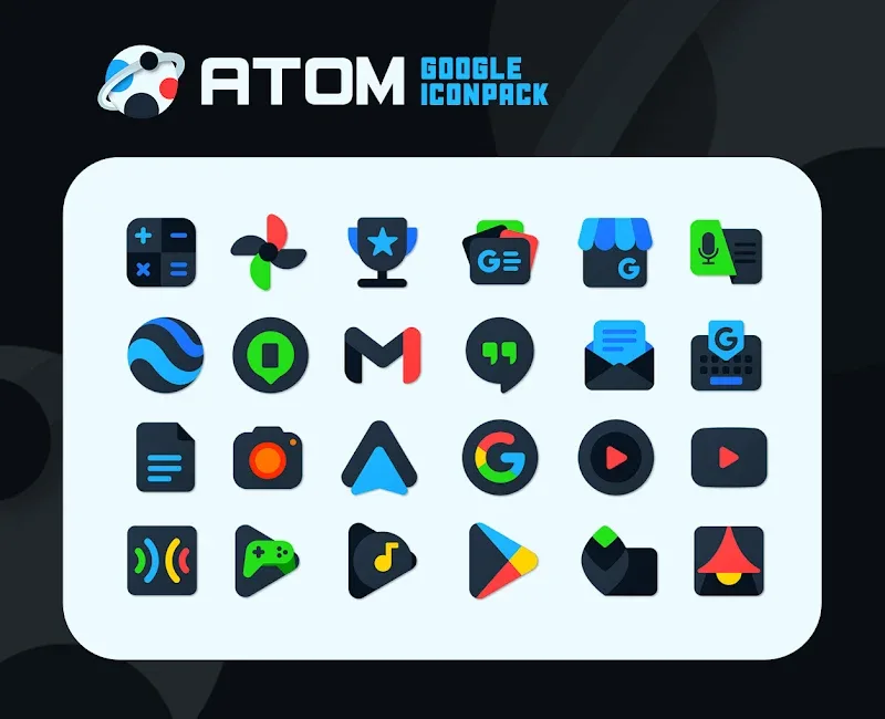Atom Iconpack Premium ed to perform a few simple steps to activate this icon pack.DEEP CUSTOMIZATIONUsers can own useful tools to help them customize the device interface. This application creates many unique icon templates to meet the needs of users. Folder icon templates will be customized according to the style that users want. The appearance of the live wallpaper collection will also make the device interface more attractive.Many Alternative Icons: Alternative icon templates will be applied when requested by users. The alternative icon templates will also have unique color schemes. The combination of warm and dark tones w