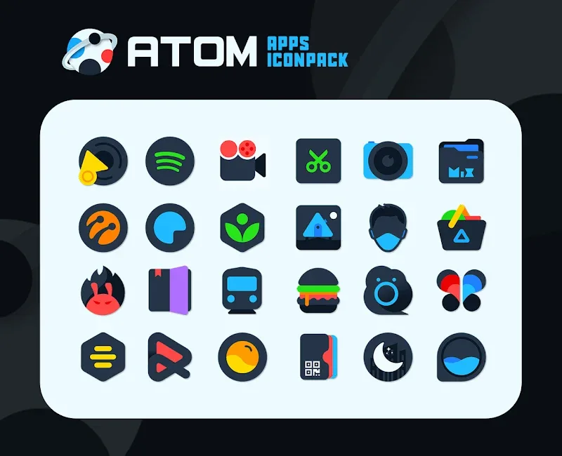 Atom Iconpack Mod Apk nds of unique icon patterns for users to use. These available icon patterns are all designed by top designers. Over 2800 icons are the product of hours of meticulous ideation and design.Frequent New Updates: The application will add the latest icon templates in the updated version. Each updated version can add dozens of new icon templates. Users can expect more beautiful icon templates in the updated version of the application.Works On Any: Users can use this unique icon pack to replace the old, boring icon pack. The application provides many tools to support the interface redesign process. Users only ne