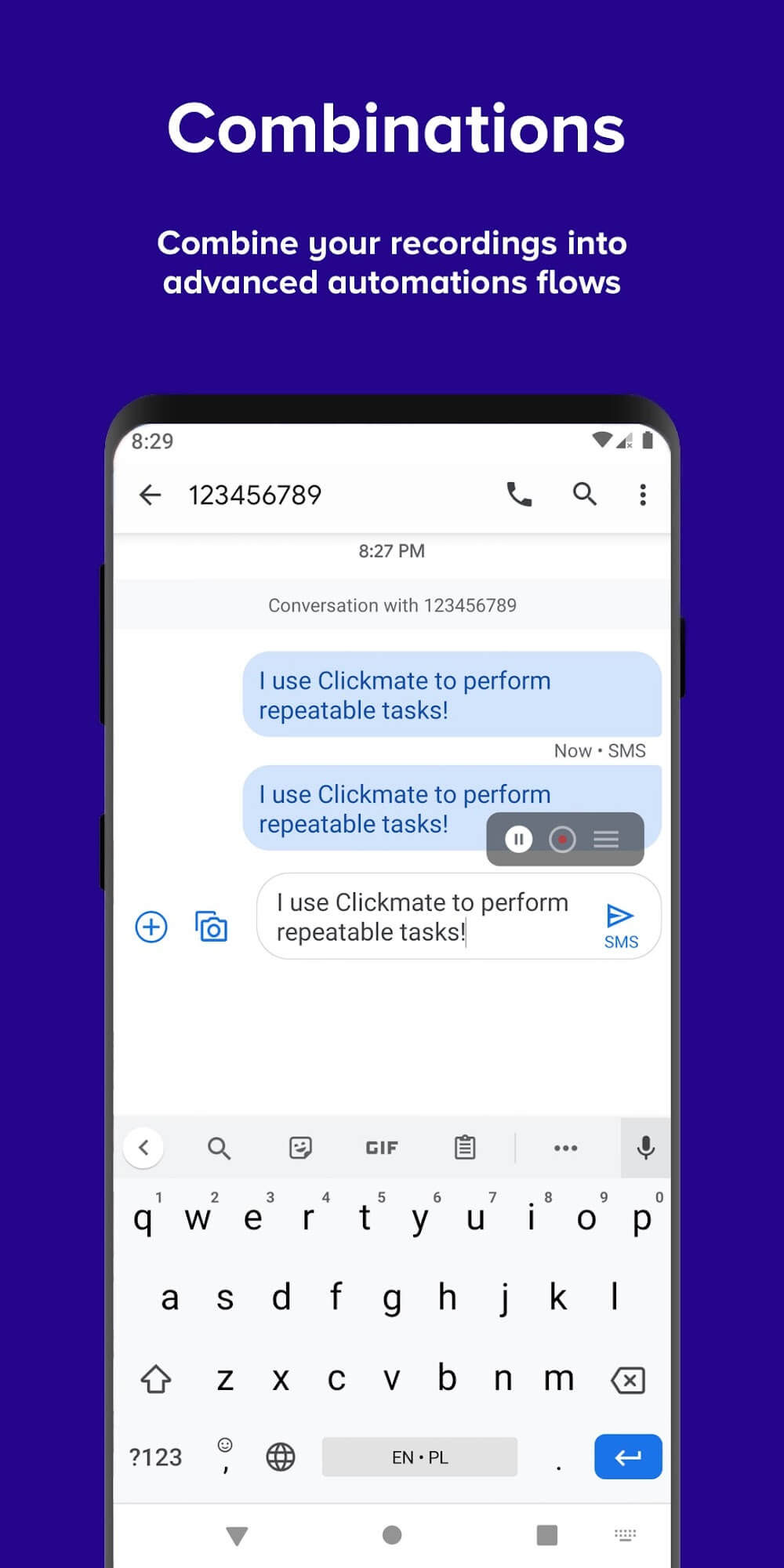 Auto Clicker Macro Clickmate Mod Apk eted.The effects recorded by users during the use of the utility provided by Clickmate have been verified. The system works on all different types of games and applications. The commands can be adjusted depending on the unique characteristics of the content you want. To make it easier to enter the startup command, the shortcuts have been pinned right on the home screen, and you can select them. Small widgets will be arranged on common tables and are always ready to apply to any activity. I