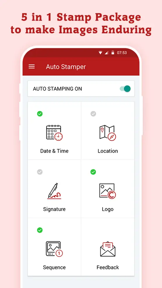 Auto Stamper Mod Apk ture. With just this one feature, you will own up to 5 useful and convenient features with just one touch. Helping you to edit quickly and save a lot of your time.Unique Combination Stamps: With this application, you will own an extremely versatile stamp. This stamp is a unique combination of different themes, and with just one stamp, you can quickly stamp your photos with the shapes or themes you want without having to use too many stamps and perform too many steps.Intellectual Pro