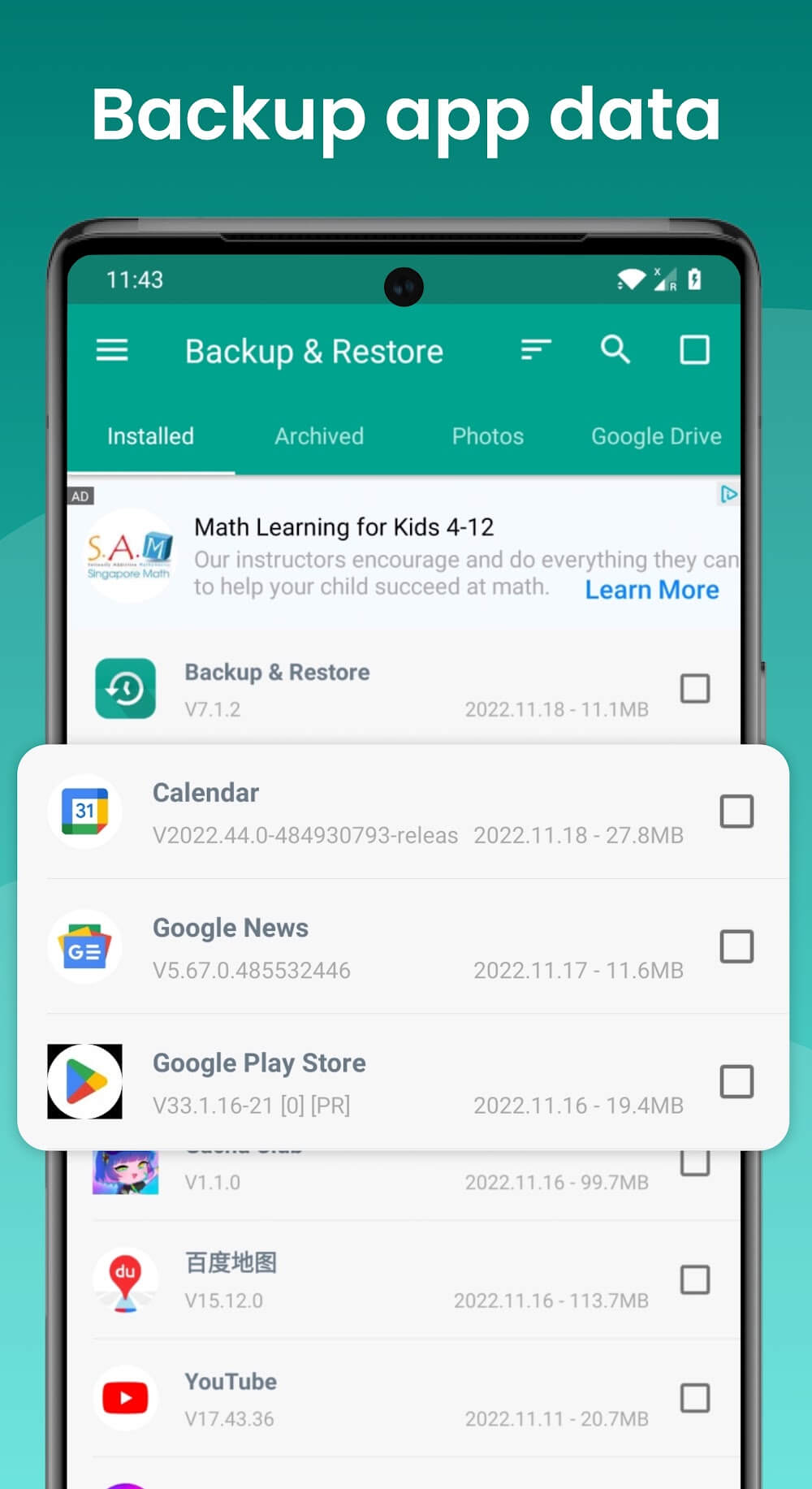 Backup and Restore Mod APK: Your free personal assistant for effortless, secure, and swift app data backup.Backup and Restore – APP creates extremely useful journeys when it comes to storing important resources. The system always operates and ensures that resources are backed up in the most reasonable way. From there, mass transfers can take place between selected reputable platforms.COMPREHENSIVE BACKUP & RESTORE CAPABILITIESBacking up diffe