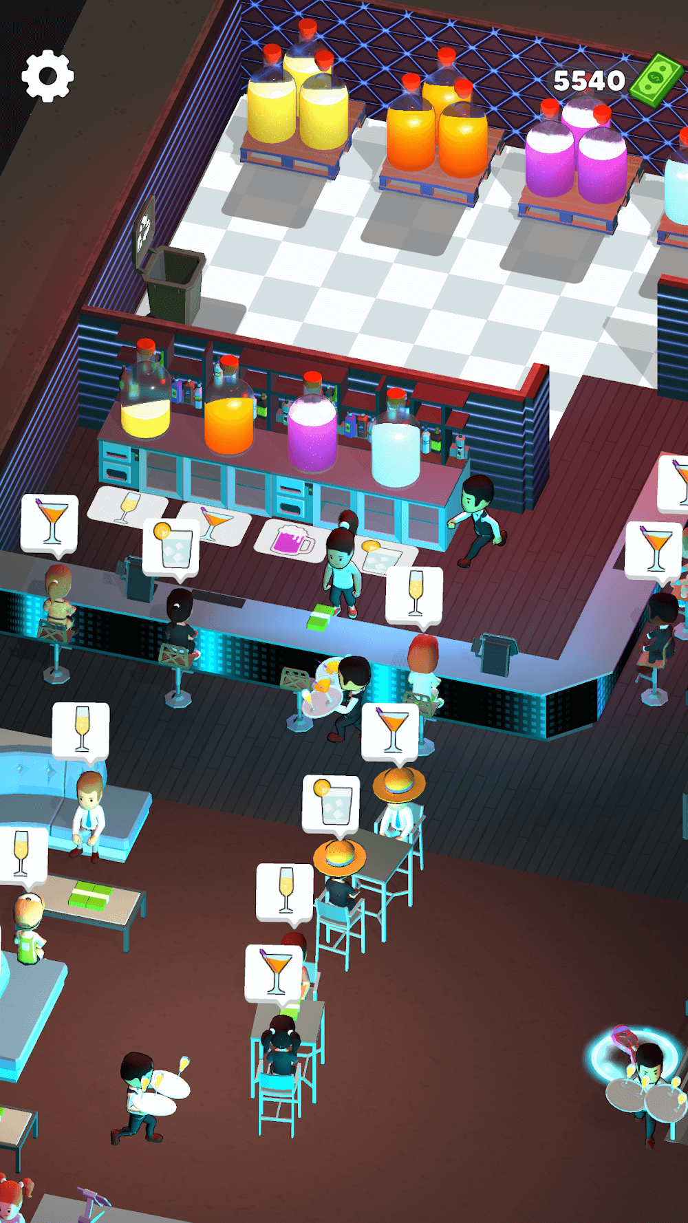 Bar Master Premium your bar soon after.Upgrade & Expand: If players are not qualified to open many bars, they can quickly unlock different aspects of each bar. Therefore, they will often need to upgrade the overall bar’s size and drinks.REALISTIC MANAGEMENT EXPERIENCEAny player can expand their business with different strategies over time. From there, they can create suitable development directions based on the resources they have just received.Hire & Train Staff: Anyone wants to hire more bartenders to increase the speed of servin