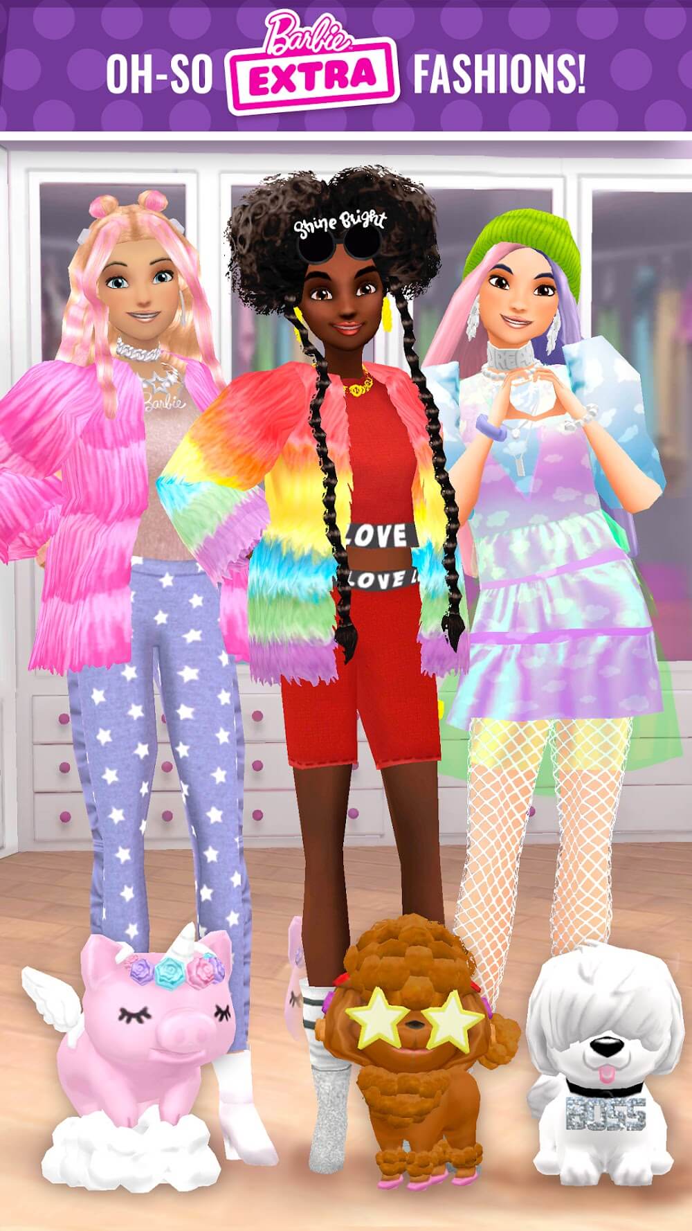 Barbie Fashion Closet Mod Apk beautiful for entertainment purposes.CHARACTERSIf you have ever had a Barbie doll, it must have been a wonderful time. From there, you will be able to find these familiar experiences through gameplay.Variety of Options: The system often allows you to meet many familiar characters such as Barbie, Nikki, Rene, etc. At the same time, you also need to pay attention to their dressing style.Personalized Looks: Players can explore different resources and quickly create impre
