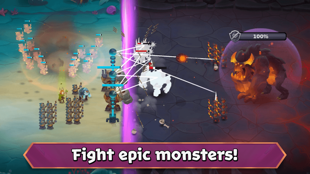 Coming to Battle Legion: Mass Troops RPG, you will come to extremely large battles. In this game, you will have to build yourself an army and train them to become the best warriors. The game will bring you armies with different characteristics, so you can quickly choose a civilization that suits you. How will you come to this game and experience unique challenges?MASSIVE 100v100 BATTLESThe game will bring you extremely exciting battles. You will enter 100v100 matches that w