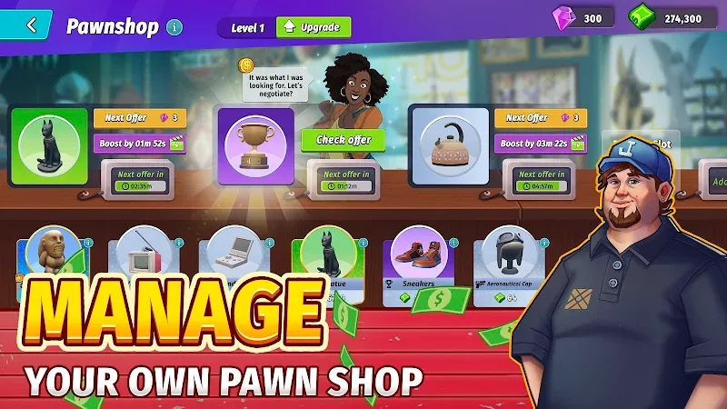 Auction City Tycoon Simulator Premium e.Outsmart rival bidders: The main character’s requirements can often increase in level depending on the opponent appearing. Therefore, sometimes the boldness creates an extremely surprising gameplay with hidden treasures.COMPREHENSIVE BUSINESS MANAGEMENTThroughout the game, players will often experience events many times to complete all the achievements. Of course, this process often makes each person feel renewed because of the different challenges.Run your pawn shop: When you