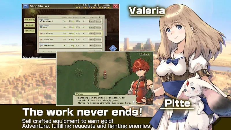 Blacksmith Of The Sand Kingdom liteapks ve more new opportunities to be worthy of the title of a highly capable successor.Craft & Sell: Craft new tools, forge more modern items to sell at different prices, and earn new profits.Gather & Loot: Start using your abilities to collect new treasures or rob others to get huge spoils.Quest System: The game gives you new missions with unique new roles, allows you to freely explore your own abilities, and grow stronger every day in a series of challenges.
