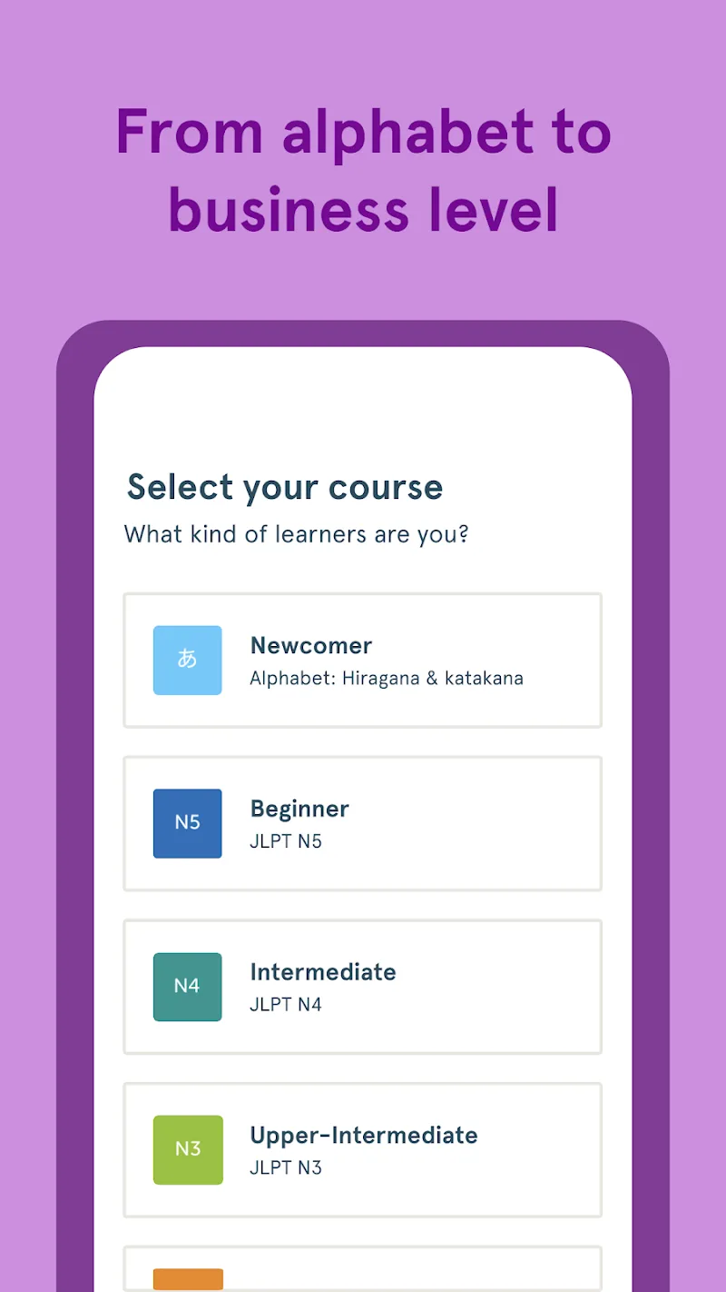 Bunpo Learn Japanese liteapks ation can still launch all the learning programs and make people love learning Japanese.Offline Availability: The ability to access and study even when offline has greatly supported users in the learning process with the application. All lessons and tests are opened and taken without connection. Users can study at any time that is convenient for them.On-the-Go Learning: This application also provides a perfect learning service for studying on the go, no matter where you are. The learning programs are decentralized and taught in a modern way, allowing users to study anytime. You just need to spend time practicing, and you will be fluent in Japanese like a native.