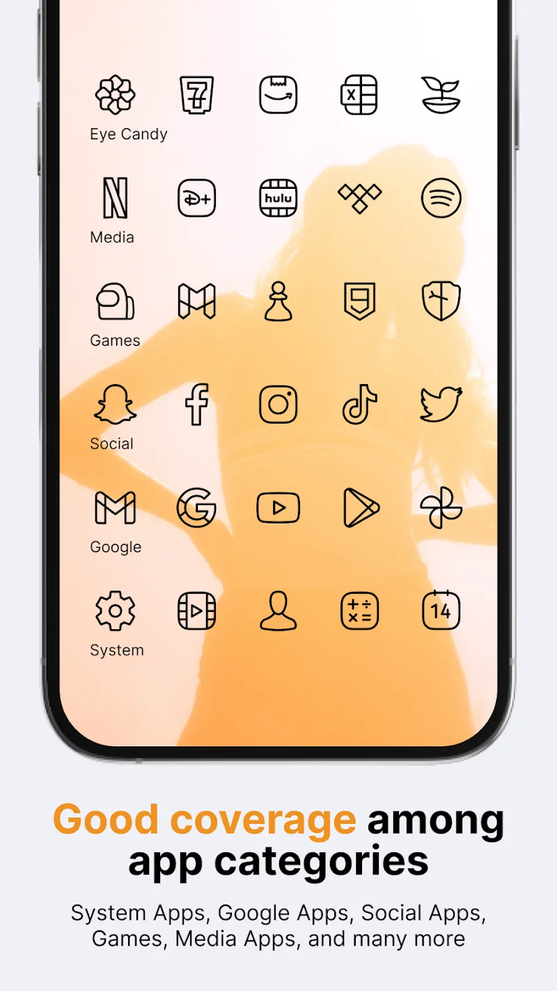 Caelus Black Linear Icon Pack Premium At the same time, it is worth noting that all icons inside are completely empty.Use for various creations: The lines are not too thick, so elements often sync when they are close to each other. You can style them together without any major issues.THEME COMPATIBILITYOnce you are satisfied with the icons, try other resources to complete the customization. Users can quickly grasp the style and create harmonious coordination.30 Bright Wallpapers: All elements are black icons, so you can’t use wallpapers that are