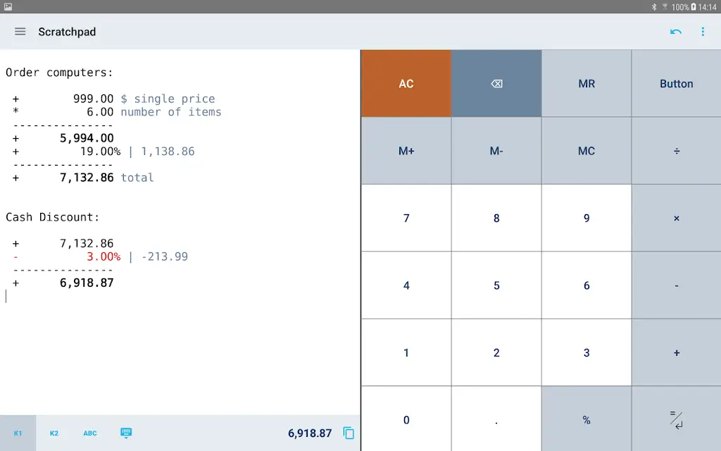 CalcTape MOD APK – Your Everyday Calculation Companion. Easily Check, Correct, and Customize Your Calculations.UNIQUE BLEND OF NOTE AND CALCULATOR FUNCTIONALITIESWhat do you get when you combine a note app’s versatility, the capabilities of a desktop calculator, and the comfort of a conventional calculator app? Enter CalcTape, the perfect synthesis of these components created to simplify your daily calculations. And although it isn’t a scientific calculator, how often do you really need one in your day-to-day existence? Let’s be real.CALCTAPE ENSURES ACCURACY WITH ITS TRACKABLE AND CORRECTABLE FEATURESHave you ever been working on a calculation when you suddenly wondered, “Wait, did I enter that last number correctly?” or “Hmm, that result seems a little off.” Those times of uncertainty are history because of CalcTape. With the help of this softw