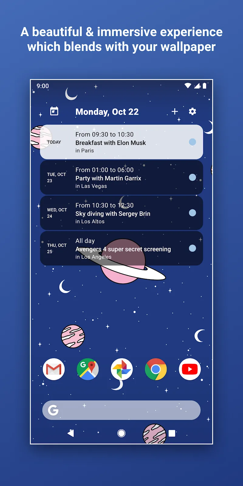 Calendar Widget Agenda Planner Premium plication has full tools to serve the customization requirements or create a new task board.COMPLETE PRIVACYTo ensure security, the application has applied the method of local creation and interaction. Users will actively protect the data source that has been added to the application. In addition, all ads will be blocked to avoid interrupting the user experience.Operates 100% Locally: The application will not need an internet connection to operate. All application activities are local activities. This will help users feel more secure when entering their schedules into the application. This factor also ensures the sa