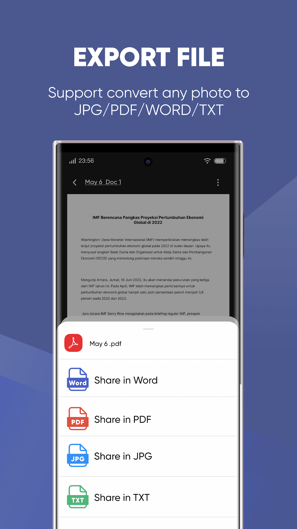 Camera Scanner Pdf Scanner Mod Apk onversions. In addition, many image processors help you to align the parameters well without changing the text scale. We support you on any device.DIMENSIONAL CONVERSION MODE WITH HIGH PROCESSING SPEED AND SHARP IMAGE EDITORWord processing jobs and image designs can now be simpler on any device thanks to Camera Scanner – PDF Scanner. We help you scan image documents to text, remove background, create JPG format, or convert to PDF very easily. Multiple image editing modes with old image recovery functions