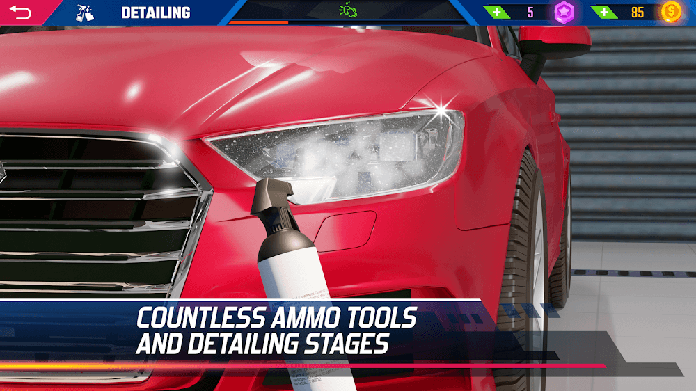 Car Detailing Simulator 2023 Mod Apk the appearance of a car. Of course, you will be a new worker and will be given detailed instructions, and you only need to complete what you need to do. Surely, you will quickly be able to grasp the job and approach different tasks.Use real accessories: The game includes products and objects inspired by real life.Diverse number of cars: There are more than 30 licensed cars, so you can meet your favorite car brand.UPGRADE YOUR GARAGE WORKSHOPThe first task you will find in Car Detailing Simulator 2023 is to wash a car and help it change its appearance. Players will be asked to spray car wash solutions on the car and make sure all the solutions cover the entire car. In particular, the game supports rotating the camera completely quickly instead of having to swipe continuously. Additionally, you will also see the tasks that you will need to do on a progress bar, and only when the progress bar is complete will you be able to move to the next task. So, you should pay attention to every little detail so as not to get small problems.Many basic tools: When starting the game, the system will provide a series of tools that players will to get acquainted with.Unlock new things: Gradually, players can g