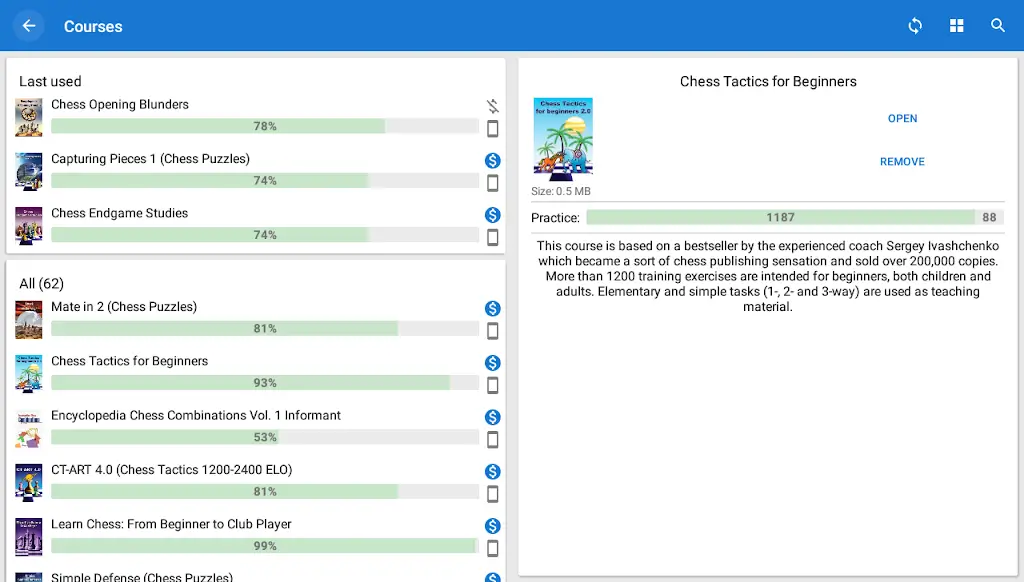 Chess King Premium Difficult moves create many challenges for players. They can accompany the coach on the journey to conquer this sport that requires a high learning spirit. Many tips and good moves will be guided by the coach to the players.CROSS-PLATFORM ACCESSIBILITYMany interesting situations in chess will be recreated on the chessboard. Players need to find ways to solve these problems to be able to win convincingly. Each chess training course takes place at any time requested by the player. This intellectual game will become the favorite content of players.Play Without Limits: A series of new chess games will be pre-arranged in the game. Players can participate in interest