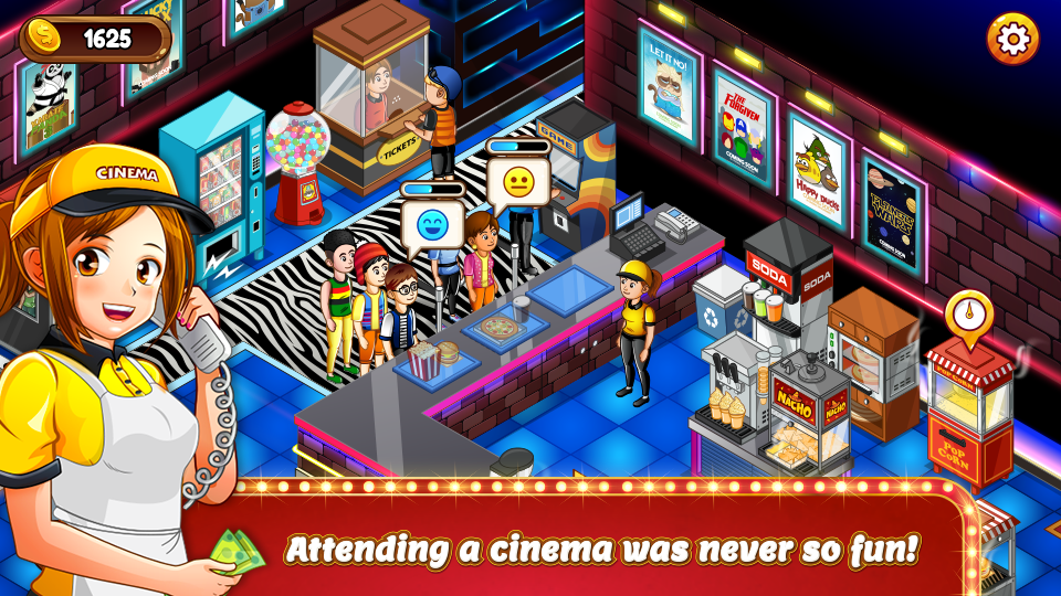 Cinema Panic 2 Cooking Game Premium roblems that you have to handle immediately.Bonus Popcorn Time: When the system recognizes that you have done a good job, some positive effects will be added. For example, you need to tap the screen continuously because there is a bonus to increase the rate of money from popcorn.CUSTOMIZATION & UPGRADESBecoming rich is inevitable if you make many people happy and maintain a stable number of customers. From there, your business area will quickly expand based on your control.Decorate Your Cine