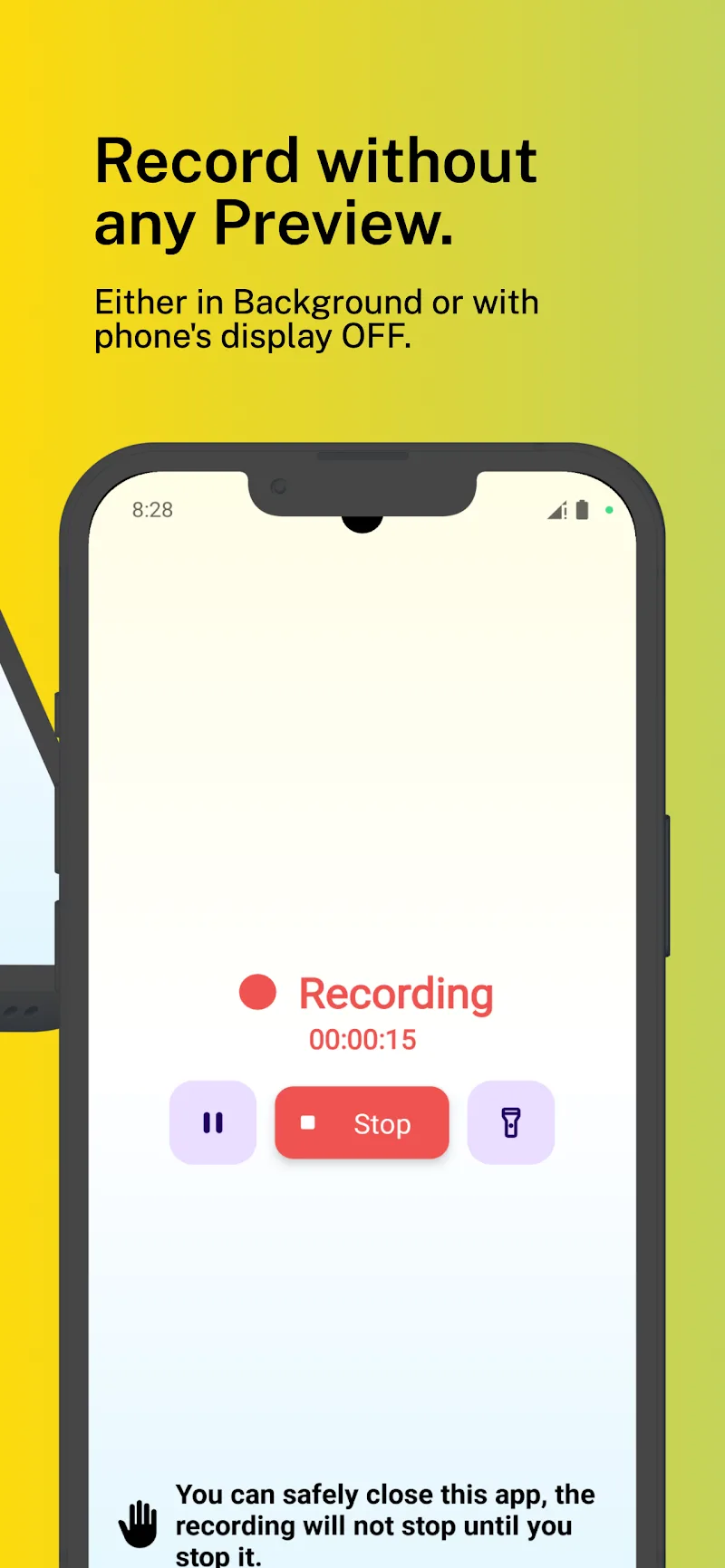 In addition to the device’s camera, users also have another option to record videos. Closed Camera – Video Recorder brings a more advanced and superior video recording experience to users. They will enjoy special video recording features that are only supported by this application.RECORD IN BACKGROUNDUsers can record special videos even when the screen is locked. The application will be in charge of recording videos in the background or recording in background mode. This feature helps the application’s operation not be detected. It also brings maximum safety and privacy to users.Record With Screen Off: The c