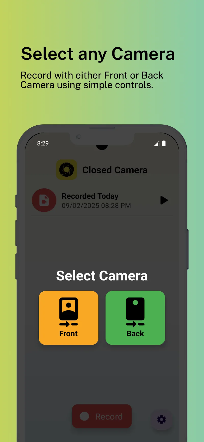 Closed Camera Video Recorder Premium oose this application. The camera’s operation will not be detected, and only the user can activate it. This brings a sense of absolute safety and trust to help users carry out secret missions.NO TIME RESTRICTIONSThe application can operate for a long time without affecting the quality of the footage. Events will be recorded completely right after the user activates the camera. The application’s hidden video recording service will meet the needs of many users.Capture Entire Events: As soon as the camera is activated, the system will focus on the recording task. The recording time of each startup is unlimited. U