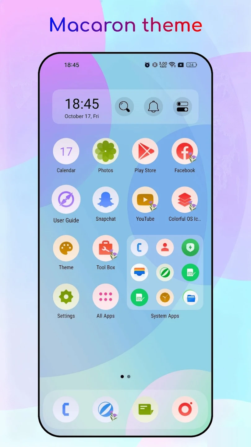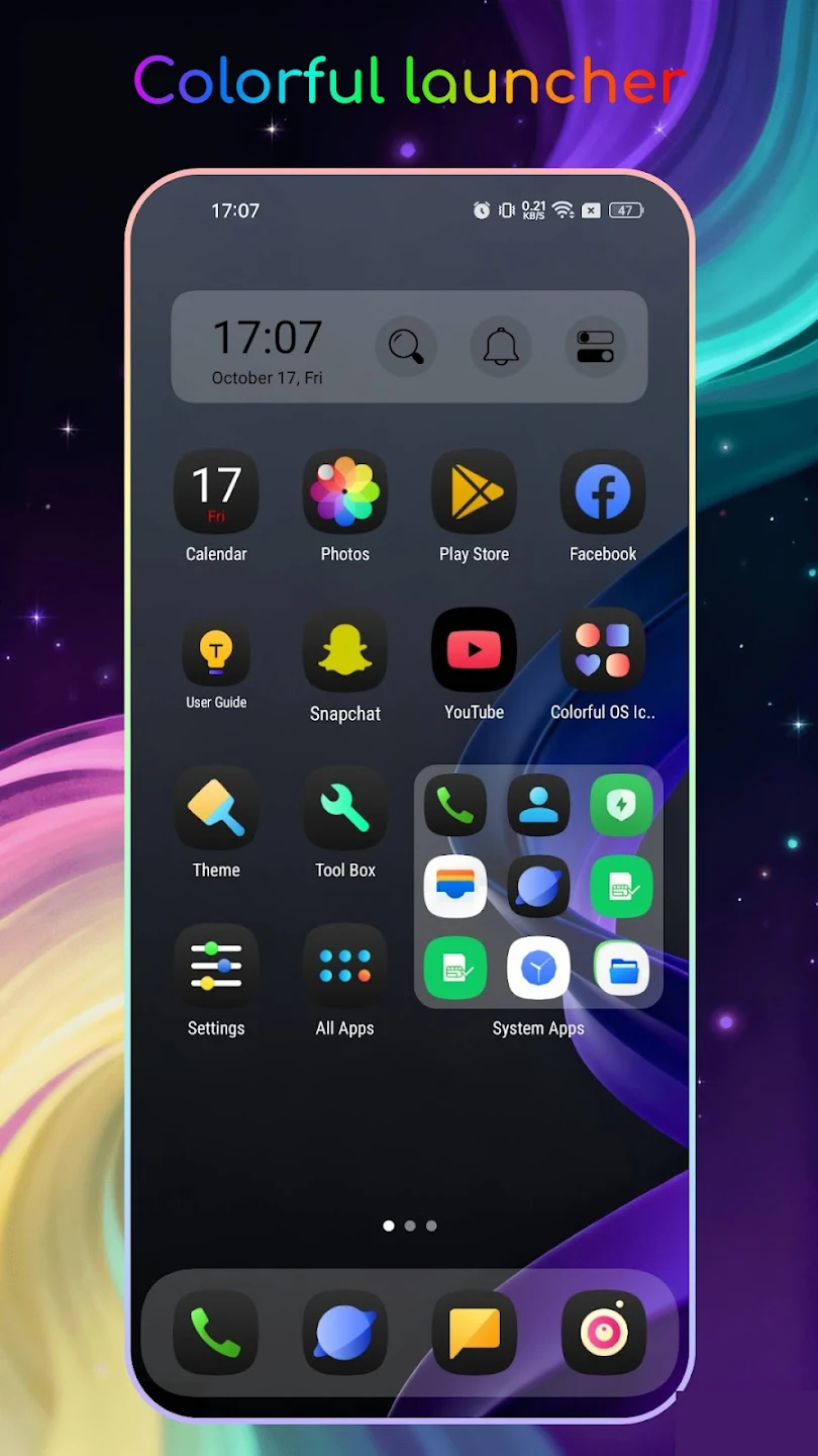 Colorful Os Launcher Premium ns can do. More specifically, the notices with red dots are also copied exactly the same when unread. This application also modifies every little detail and gives you a one-of-a-kind experience.EXPLORING THE SAFETY LOCK FEATURESMoreover, you can also use the same search bar with iOS13. In addition, users also can lock the screen layout with a password or fingerprint of the owner. With this feature, you won’t be bothered and messed up by ignorant children and others intentionally making changes. That’s why your screen only carries the user’s color; no one can change it.THE UNEXPECTED APPEARANCE O