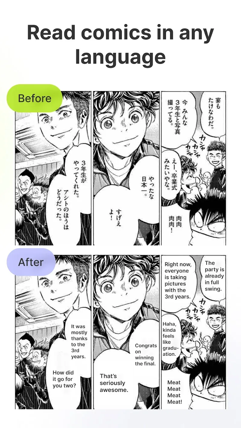 Comic Screen Translate Premium ch person can make good use of auto-translate.Flexible Use: The synchronization in the usage process completely brings certain benefits to each person. Specifically, they will often scroll comfortably and read the necessary information.LANGUAGE & OFFLINE SUPPORTThe robustness of the application is often a reasonable solution if you want to access more favorite content. Therefore, the language barrier is no longer a prominent problem.100+ Languages: Everyone can
