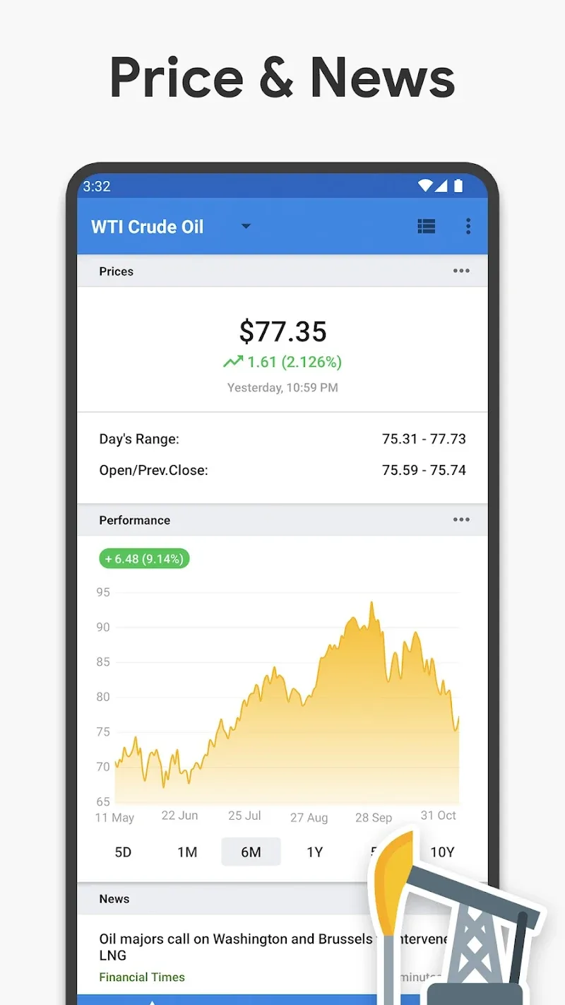 Crude Oil Price liteapks grasp the lowest or highest price points. The application shares accurate numbers to help users analyze more easily.Future Forecasting: Investment activities always bring many risks. The application will help users reduce the risk factor in each decision. The application will provide forecasts. All reports are based on verified information. Users will make better decisions.Market News: Observing the energy market is also an interesting job. Users can track the development of this market through the news board. Quick news will provide concise and complete news to users. The application also focuses on a single topic: energy.
