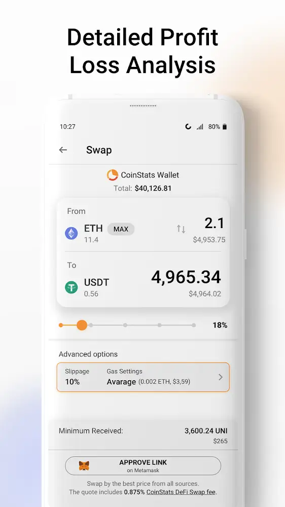 Crypto Tracker Coin Stats liteapks lem will be solved quickly with the application, which will allow users to see all your portfolio on one screen. What’s more, Coin Stats will allow its users to connect automatically for faster and simpler transaction history entry with read-only API keys.SIMPLE AND EASY TO USE INTERFACEOne of the features that the application develops with the desire to help users experience the most of the main features is the interface. The application has equipped its users with a straightforward, clean, no-frills interface and directs attention to important features. Not only that, but users can also add the minimalistic widgets that the application creates on the home screen to manage and track their cryptocurrency easily.