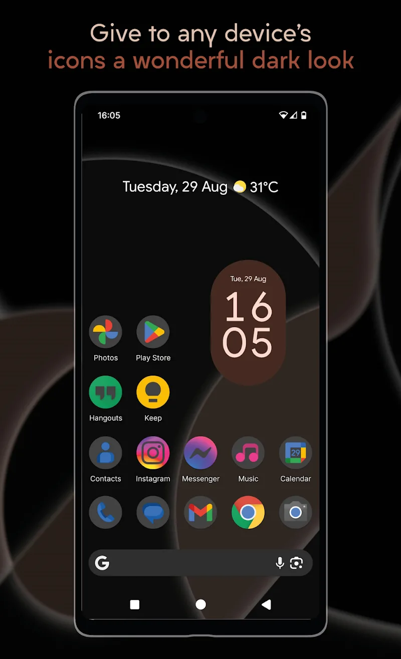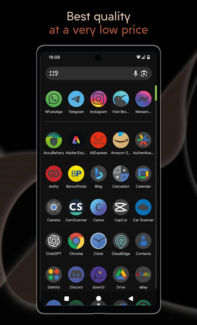 The icon pack released by Darkful – Icon Pack will quickly become the top choice for anyone who loves to customize the interface. Users have an additional beautiful icon pack that is highly compatible with dark screens. The minimalist style and the sobriety in color have made the icon pack attractive.UNIQUE DARK STYLEUsers who love the minimalist style and want to use a dark icon pack will be interested in this application. This unique icon pack not only brings aesthetic beauty but also helps users save battery. The interface will be covered with a dark overlay and will keep the original icon patterns.First true dark lo