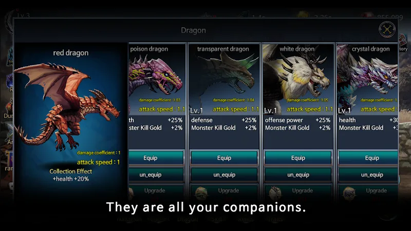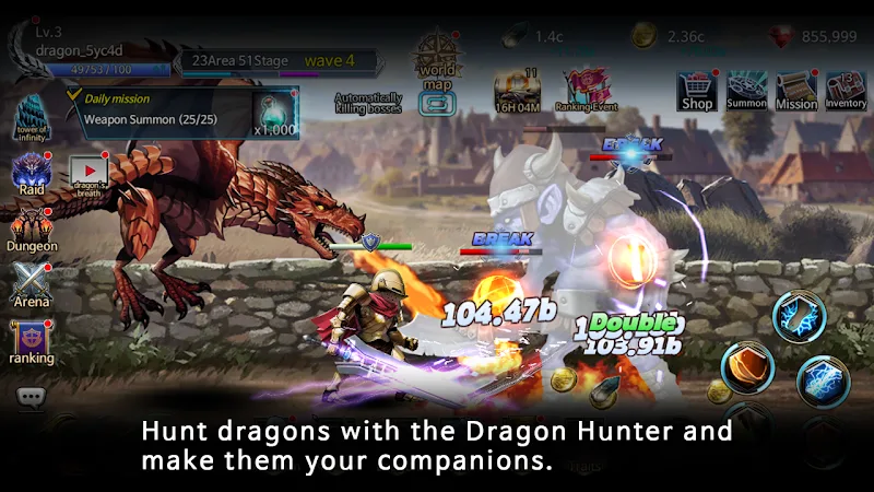 Dragon Hunter’s Tale: idle is a role-playing game that takes you on an exciting dragon-hunting adventure. Players will experience the captivating feeling of the diversity of dragons. Fighting tooth and nail will help improve strategic reflex skills.DRAGON VARIETY AND COMPANIONSHIPBringing players a unique experience when taming a wide array of dragons to become loyal companions. Each dragon species possesses unique powers to help improve the ability to be on top of the game.Diverse Dragon Hunt: Players can take no prisoners in a world of dragons, such as red dragons, transparent dragons, and space dragons. Each hunt brings a new experie