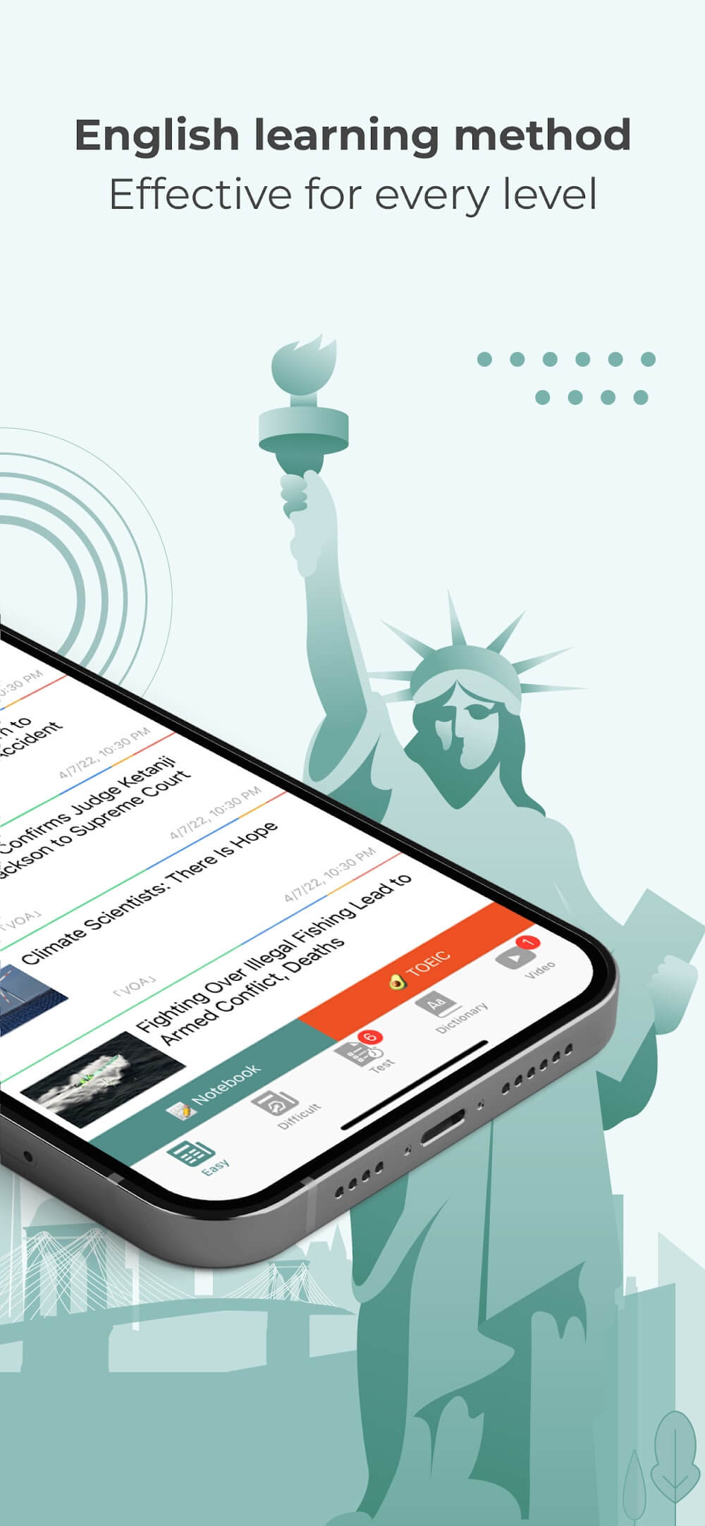Easy English News Todai liteapks ive study groups. Furthermore, the application allows you to practice listening to news or videos to gain specialized skills.TESTS FOR LEVELSThe application provides proficiency tests in the new TOEIC format based on the questions you have completed. These tests will help you become acquainted with this English test and practice applying the knowledge you have gained. The application also provides additional assessments based on the assessment board and will have experts available to answer any questions.