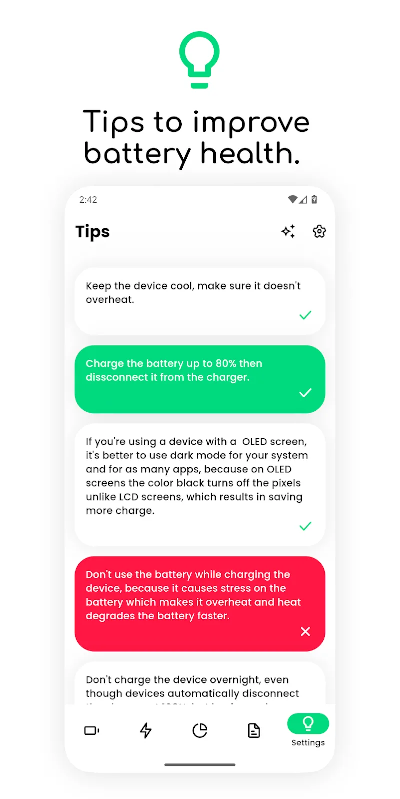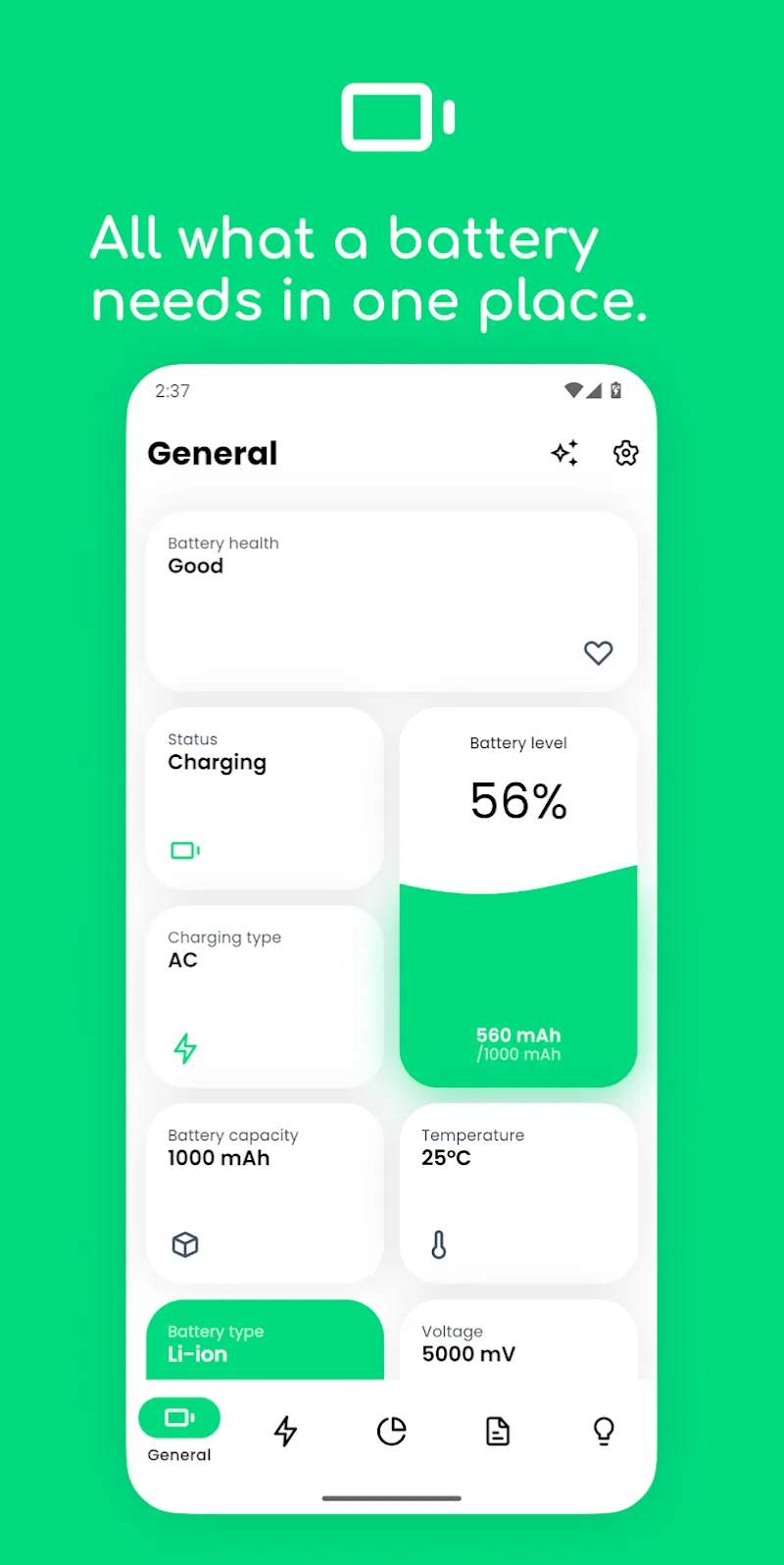 Electron: battery health info is an application that allows users to track useful information about the battery that stores energy inside their smart devices. The application will provide its users with many different types of information related to the health of the battery so that they can control and adjust. At the same time, users will also be able to receive information about the device’s battery charging process to prevent unexpected dangerous phenomena from occurring.BATTERY WELLBEING OBSERVINGOne of the most excellent highlights that the application can gi