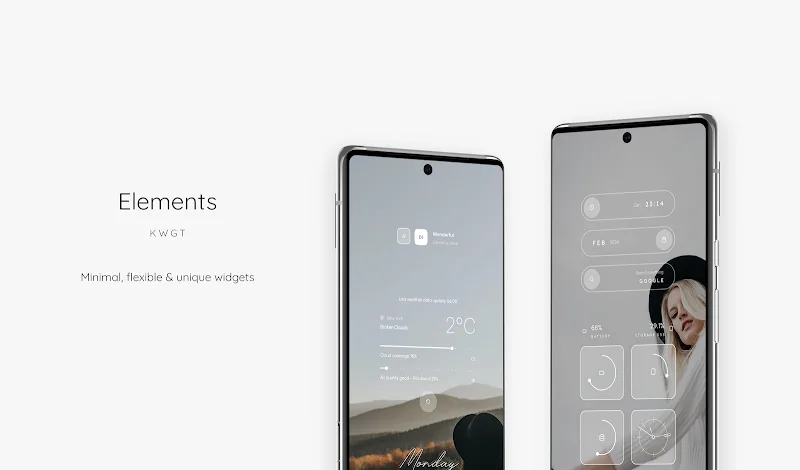Elements Kwgt Premium tion’s supporting features and tools. The application will support you and stimulate your creativity so that you can create beautiful and professional works of art.DIVERSE SELECTIONThe application also gives you extremely diverse choices with an extremely large collection available in the application. You will own the most complete collection ever, this collection will have everything you need and you can freely use it without any cost.Abundant Design Options: The application brings you more than 200 available designs with different styles, themes, and unique and interesting shapes. Each design has its own shape, color, and story. You