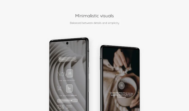 Elements Kwgt liteapks will not only own unique designs but also read fascinating stories about them. These details are all made by the most professional designers and are meticulously cared for.Variety of Functions: You can use these widgets with many different functions. You can use it as a clock, weather forecast, or entertainment widget with extremely cute and interesting animations every time you open your phone.Infinite Customization Possibilities: You can also mix the available templates together to make your phone more unique and interesting. With this feature, you will have extremely unique and interesting widgets that make your phone one-of-a-kind.