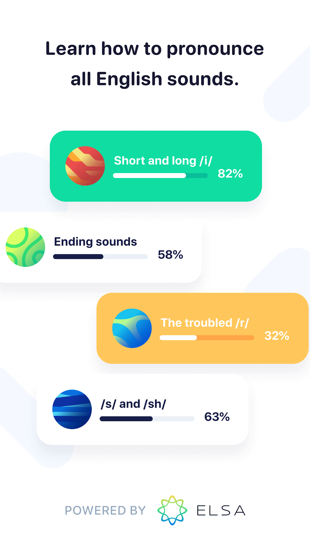 Elsa Speak Mod Apk with interest without too much difficulty.Quick review: Just recognize the sound, then you will know your results immediately.Non-stop practice: AI will become your powerful friend in conquering English and suggest many interesting exercises.ACCENT TRAININGSupport for pronunciation in multiple ways is a feature you will find in ELSA Speak, and it will be absolutely useful. The most basic way is still to identify and help you know mistakes to correct, and this is suitable for people who still have a foundation in English, whether this foundation is good or not. In particular, if you want to learn in-depth, you should go to the phonetics feature of the application. You will be able to know how these phonemes sound through the descriptions and can imitate the videos that the application provides. From there, you will know why you read wrongly before and feel happy when you unlock a new skill in learning English.Improve pronunciation effectively: Users will know the percentage of completion when reading a new word before the application gives suggestions.Knowledge mastered: With a foundation in phonics, you will be able to detect mistakes and try to complete interesting exercises.SPEAKING PROFICIENCY SCOREWhen you use ELSA Speak to study, you