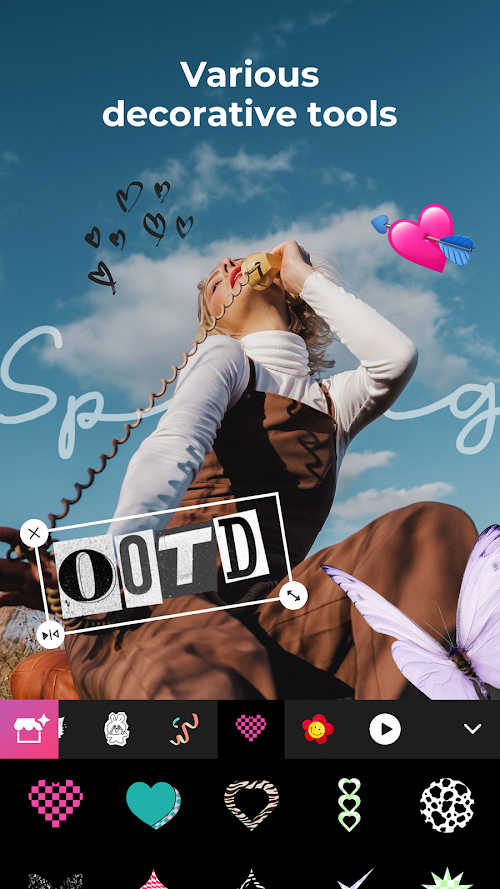 Unique touches: Make photos stand out by adding stylish stickers, text captions, hand-drawn art, or shapes.