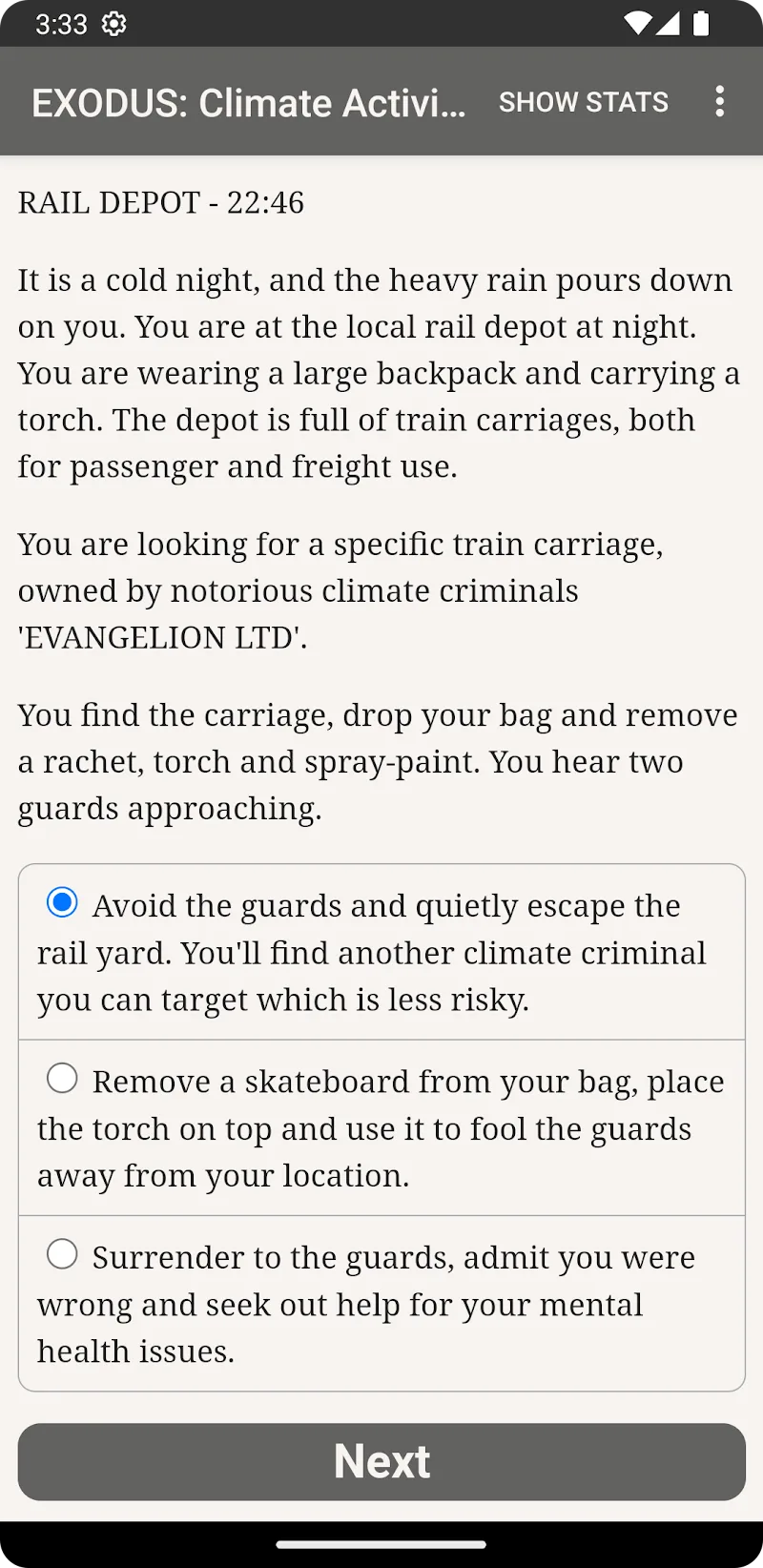 EXODUS: Climate Activist Mod Apk – is a thrilling interactive novel where you sabotage climate criminals and join EXODUS.EXODUS: Climate Activist is an extremely new game with the interactive role-playing genre. The special thing is that this game has absolutely no graphics and sound like other normal games and this game is operated by reading the content and imagining the details in it. This game will spark your imagination and give you an experience like never before.SOCIALLY CONSCIOUS STORYLINEYou will be transformed into a climate change rese