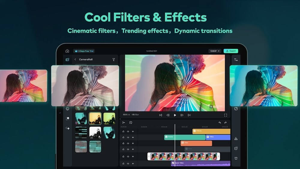 Filmora HD Mod APK makes quick, simple videos on the go. Choose a template and film! With many trendy templates, your project will look professional.FilmoraHD makes editing easier on different platforms that users can use and complete the product as soon as possible. Sharing it via the cloud is not too difficult for you, and you only need enough resource files; then, adding them to different layers will create the perfect content combination, but don’t forget to tweak them back. In addition, if you are a frequent user of social networks, the application will capture the current hot trends. This is the key for you to increase your account’s followers.POWERFUL EDITING TOOLSIf you need a powerful editing application that can help you work anywhere, the perfect choice is still FilmoraHD. This is an application that integrates the features that a content creator needs today to quickly make content more interesting. At the same time, a notable point when you use FilmoraHD is that you can edit right on your smar