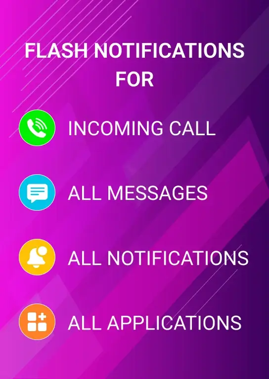 Flash Notification On Call Premium such as Facebook Messenger and Whatsapp … can connect with it. Any incoming call, text, or notification from apps can light up the flash and make them visible to the user, and this makes all the people around not disturbed by the noise from the phone ringing.THERE ARE MANY TYPES OF GLOWSo how can we distinguish between incoming notifications, when calls come in, and when messages come in? The app will have different glow patterns to help distinguish between types of notifications. This will help you know what’s essential and what’s less important so you can be selective about what comes in
