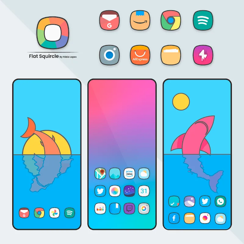 Flat Squircle – Icon Pack will share many new and interesting icon designs and utilities. Users can create a more unique experience space thanks to the combination of icon packs and new wallpapers. A huge source of ideas from flat design and materials is used to create this icon pack.HIGH-QUALITY ICONSThe icon pack is designed in a modern and simple style. Each icon is covered with a light and harmonious color layer. All designs are handcrafted to enhance aesthetics. Users will admire a collection of extremely stylish icons.Icon variety: The application’s collection contains 3500 icons for users to freely choose. Each ico