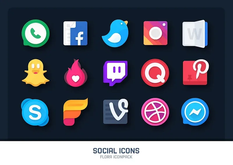 Flora’s design style: Material Icon Pack has made the icon pack more eye-catching and vivid. All icons are in the style of Google’s Material Design. Each icon is made up of many layers that create depth when viewed. The appeal of this icon pack also lies in the quality and color.EXCEPTIONAL DESIGN QUALITYThe special icon pack released by the application is designed in a main style. The modernity and sophistication in every detail make this icon pack more prominent. Users will feel satisfied with these carefully crafted icon templates.Inspired By Google: The icons in the pack are all designed in the style of Google’s Material Design. This