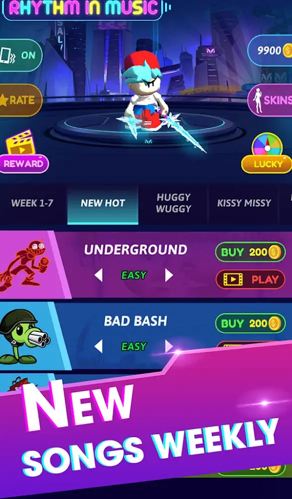 Fnf Beat Blade Music Battle Premium e each song with a good score and timing, your chances of getting rewards in this game are getting bigger and bigger. Not only unlocking more new songs, but players also have the opportunity to more great swords. They have the ability and speed to cut musical notes better than ever. In particular, the higher you go, the more difficult it is to unlock more blades because the difficulty of completing the songs will be increased. It would help if you practiced with new blades regularly to improve your ability.VARIOUS UNLOCKABLE AND CONTROLLABLE CHARACTER SKINSNot only will you unlock new blades, but a variety of unique characters with different skins will also appear together in later levels of the FNF
