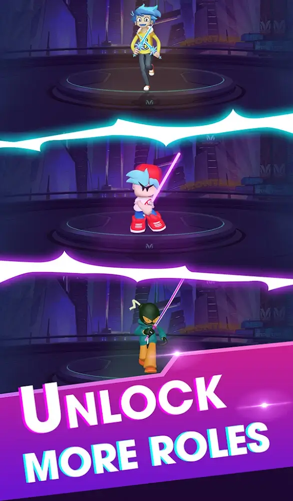 Fnf Beat Blade Music Battle liteapks Beat Blade. At that time, players will be able to own many new characters with different abilities and appearances. For example, their slashing speed is also improved, or you can customize the character’s hair with different colors. The more characters you own and control, the higher your recognition will be.EACH CHARACTER HAS ITS ROLE & GAMEPLAY IS DIFFERENTWe always want you to experience the best missions, so you can choose game modes to develop your musical abilities. Each character you own has a different appearance and role, so you can change them to control in turn in many different missions. For 1v1 missions, you should avoid the enemy’s arrows if you don’t want the score to be reduced.
