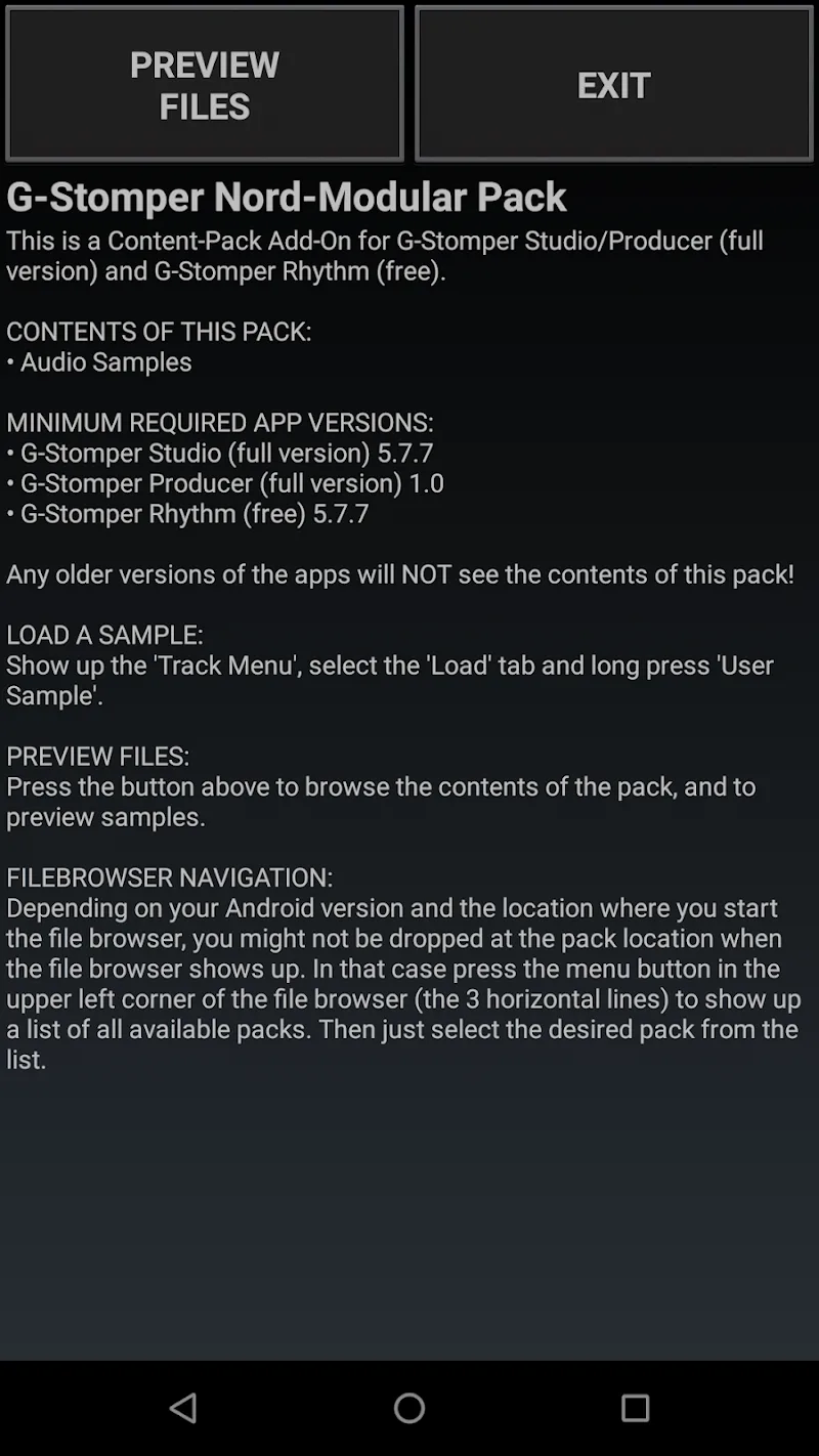 G Stomper Nord Modular Pack liteapks xtremely perfect and attractive user experiences that not every application can bring to you.No Permissions: The application allows you to listen to music easily without having to register or log in. Bringing you the fastest and most optimal moments of relaxation.Instant Setup: You will be able to quickly install the application without having to perform too many steps or too many difficult operations. Just one touch and the application is quickly installed without encountering any difficulties.