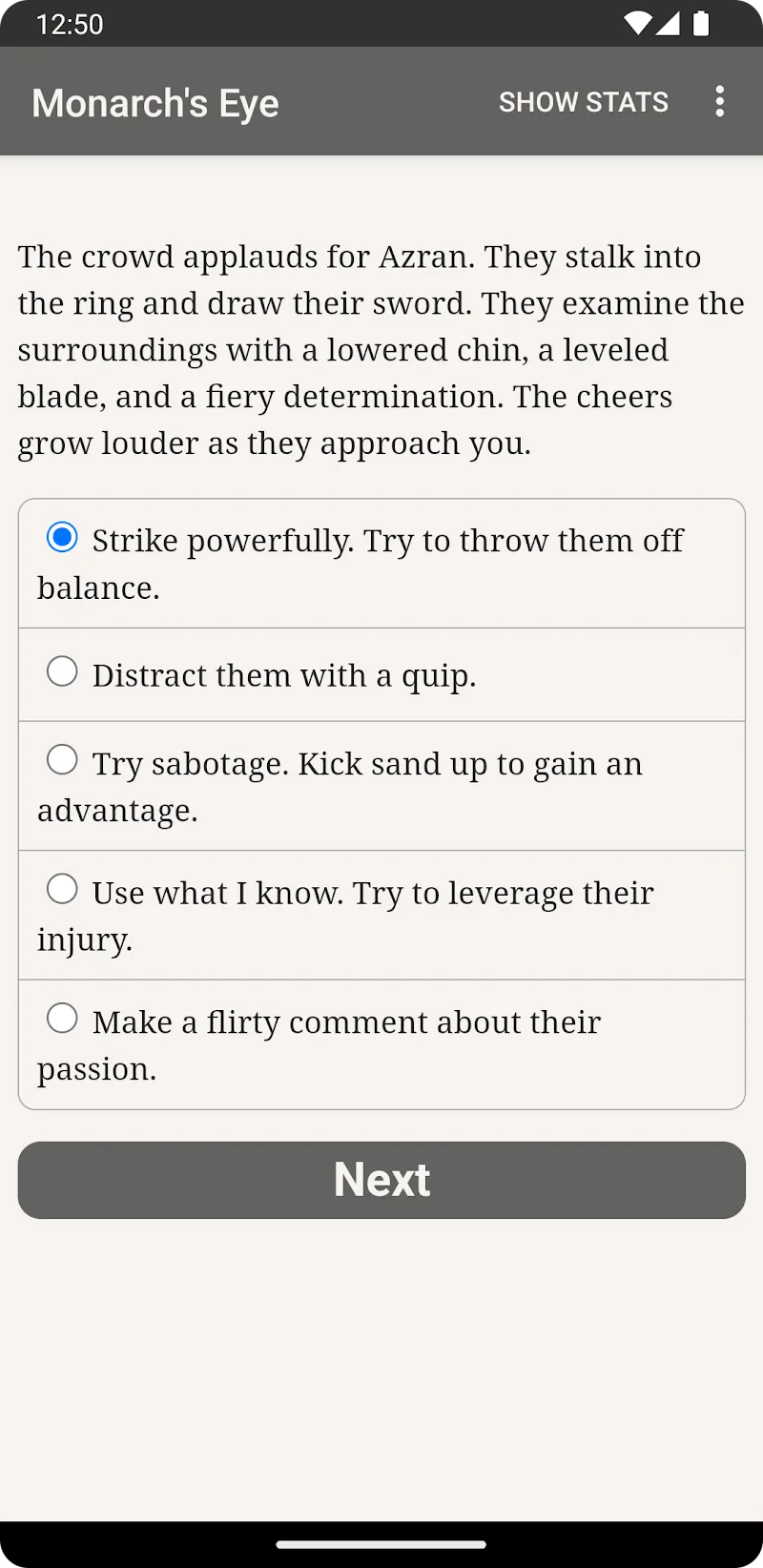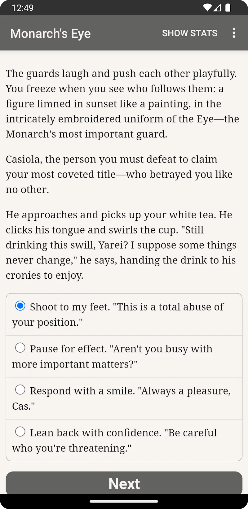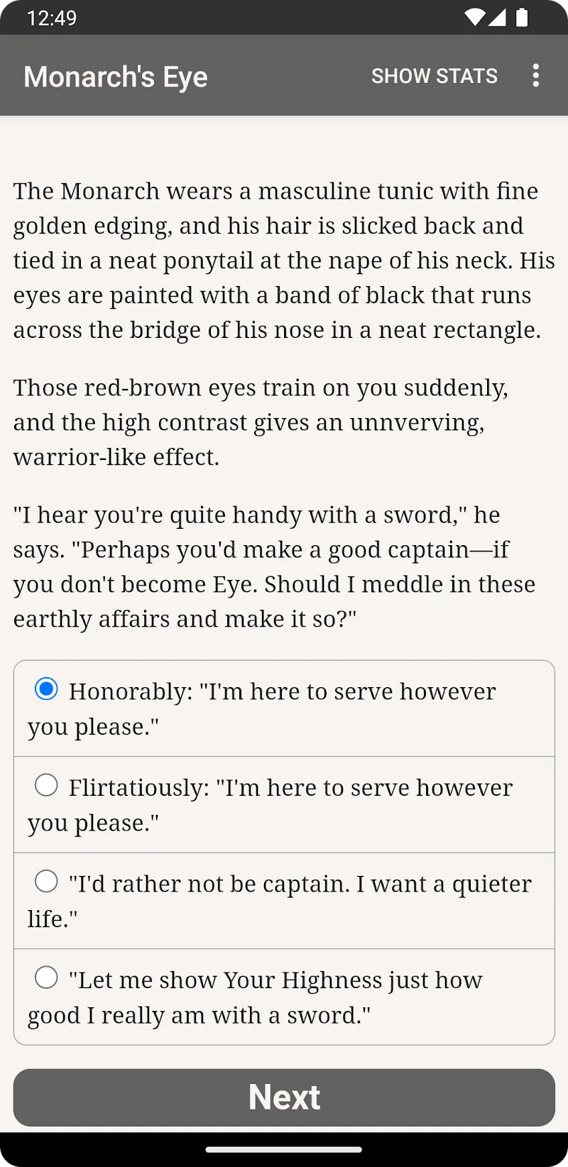 After a long time away, you return to your homeland and want to conquer the difficulties that you had previously given up. Games of the Monarch’s Eye brings you new details in a novel, from which you can discover your full potential and abilities. Facing a series of challenges will help you grow stronger and have the right ways to handle each situation.DEEP PLAYER CHOICEThe game brings you new contexts, and you are the character who has been missing for nearly a dec