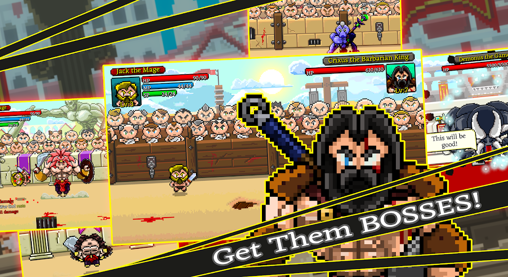 Gladiator Rising liteapks resents a unique challenge.GEAR UP FOR GLORYIn the brutal world of Gladiator Rising, a gladiator is only as good as their gear. Players can purchase, equip, and utilize a vast array of items in their quest for supremacy. From lethal swords to protective shields, the right equipment can make the difference between victory and defeat.A UNIQUE BLEND OF GENRESGladiator Rising stands out not just for its engaging gameplay but also for its seamless blend of rogue-like and turn-based RPG elements. This mix ensures that players are always encountering fresh challenges and employing new strategies. Coupled with its retro visuals, Gladiator Rising offers an experience that’s both nostalgic and refreshingly new.