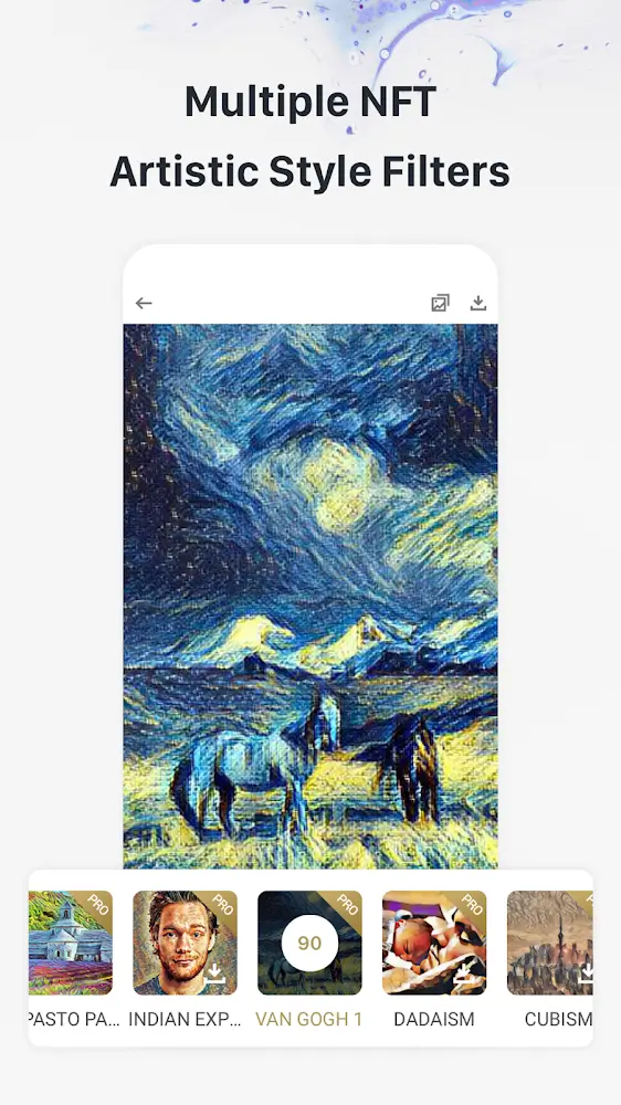 Goart Mod Apk ecause of AI support, every operation can be done with just a few simple taps.Suitable for many products: The application has strong support for portraits, landscapes, and many other themes.AI ART GENERATOR FROM TEXTThe application of AI is not only done in completing user requests but can also be used to edit images. You don’t have to spend time doing this, but provide a few different images. From there, you will choose the appropriate effects to change the style and characteristics of the image. So, you yourself can become a cartoon character and use that image as wallpaper without any difficulty or obstacle. This feature is so great that it can turn an ordinary image into something like a great Renaissance painting with the addition of special color schemes.Creating products with AI: With any request, you can receive a correct and completely artistic product.Compatible with many styles: Users should mention the style of art they want to use to get the most suitable picture.ARTISTIC STYLE FILTERSAfter enjoying the effects with images, you should also try using the resources you have to create interesting videos. Static images are transformed into a video by adding interesting effects. In other words, this hel